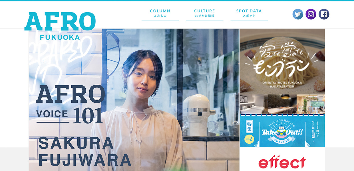 福岡の今がつまったグッドライフマガジンAFRO FUKUOKA。福岡(天神・大名・博多・今泉…etc)のファッションやグルメ、美容にインテリアはもちろん、各種イベント情報や嬉しいプレゼント情報などを発信しています。2009年総務省主催 九州ウェブサイト大賞受賞。